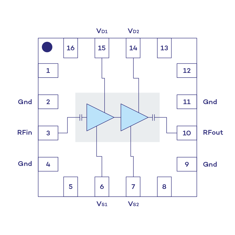 The device has a linear gain of 18 dB and a typical noise figure of 1.0 dB. Typical operating supply current is only 28mA with a supply voltage at +3V and -3V. It is manufactured on a PHEMT Technology and is especially suited for radar and for telecommunication applications.